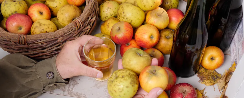 The farm cultivates apples from 8,000 trees to produce cider using traditional methods.