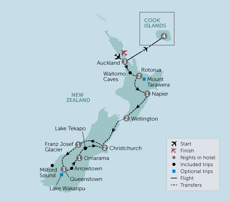 Transfer to the airport for your flight to the Cook Islands via Auckland. As you cross the International Dateline, you will arrive on the previous date.