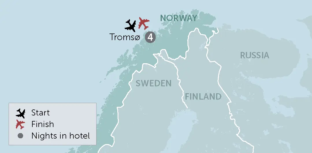 The afternoon is at leisure to explore Tromso. As the world's northernmost university city, Tromso boasts a vibrant cultural scene, with galleries, museums, a lively nightlife, and a great restaurant scene. Conveniently within walking distance from your hotel, the Polaria Museum is also an option for your free time, where you can learn about the diverse array of creatures thriving in the Arctic waters.